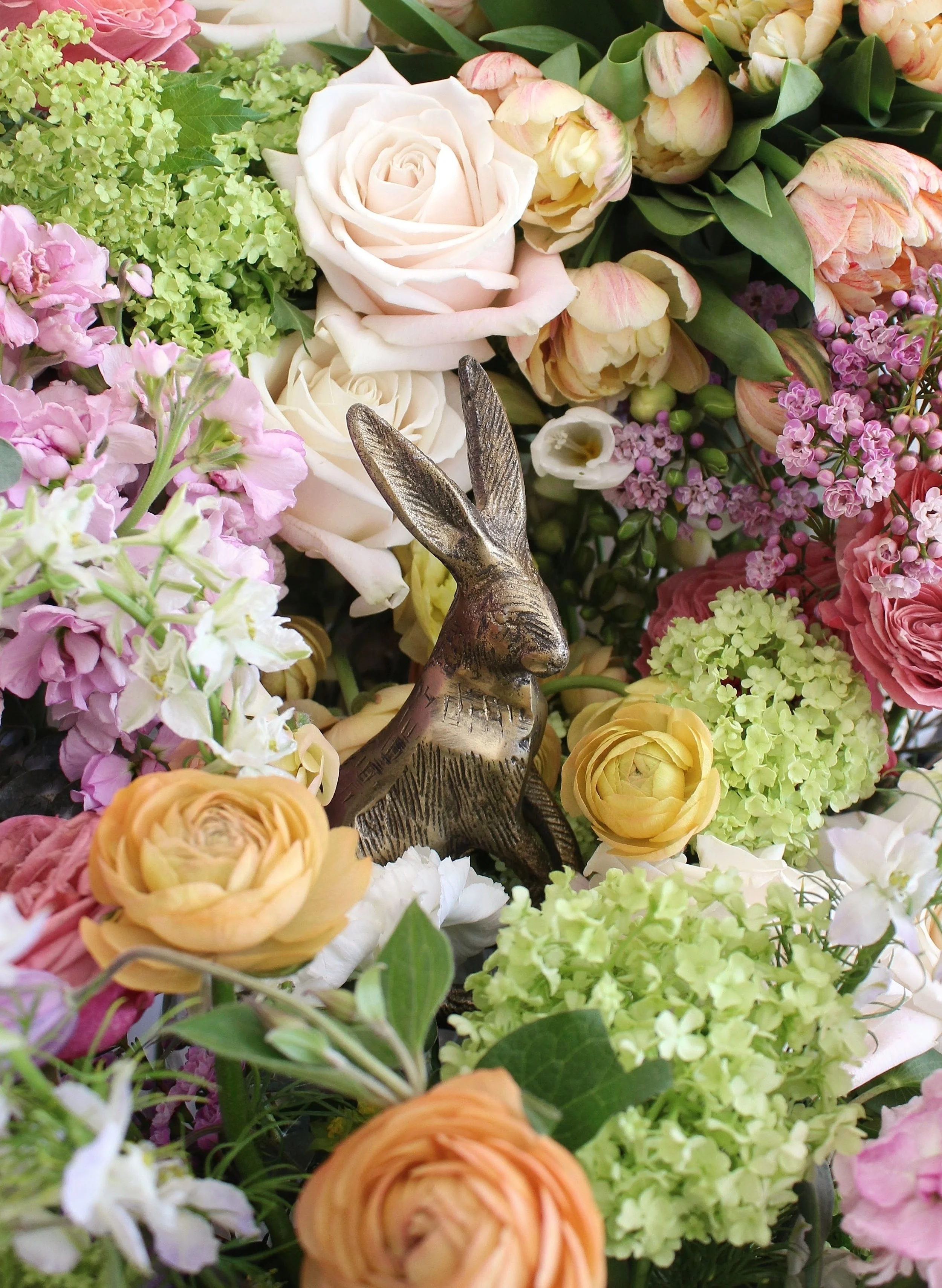A spring-inspired mix of florals in a pretty pastel colour palette, with fresh greenery and pussy willows. Perfect to welcome in spring, and celebrate Easter!